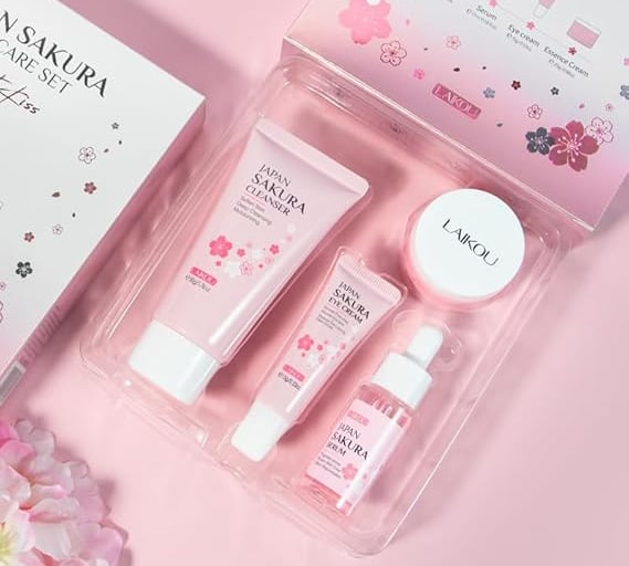The LAIKOU Japan Sakura Beauty Gift Set brings together a complete, travel-friendly skincare routine inspired by the gentle purity of Japanese cherry blossoms. This beautifully curated set includes a cleanser, serum, eye cream, and face cream — all designed to work in harmony to nourish, brighten, and refresh your complexion